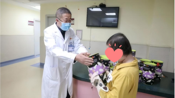 医生给即将出院的小葳葳赠送礼物