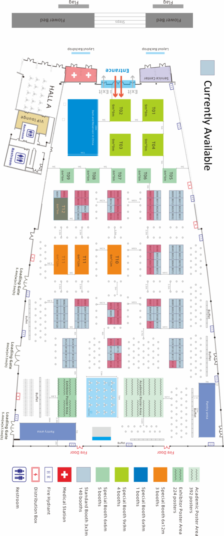 (二)参展展位示意图:展位图附后,展位(T12)面积为54㎡(6m×9m),限高6m,不允许吊装。