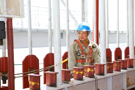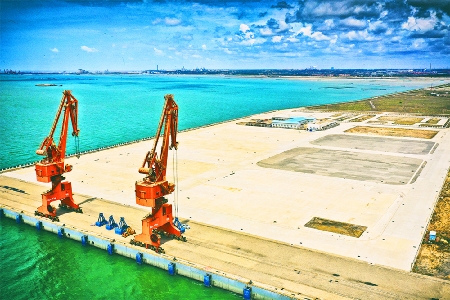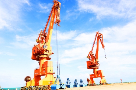 图为已经建成的2个10万吨级泊位码头。1号件杂货码头年吞吐能力160万吨,2号散货码头设计年吞吐能力981万吨